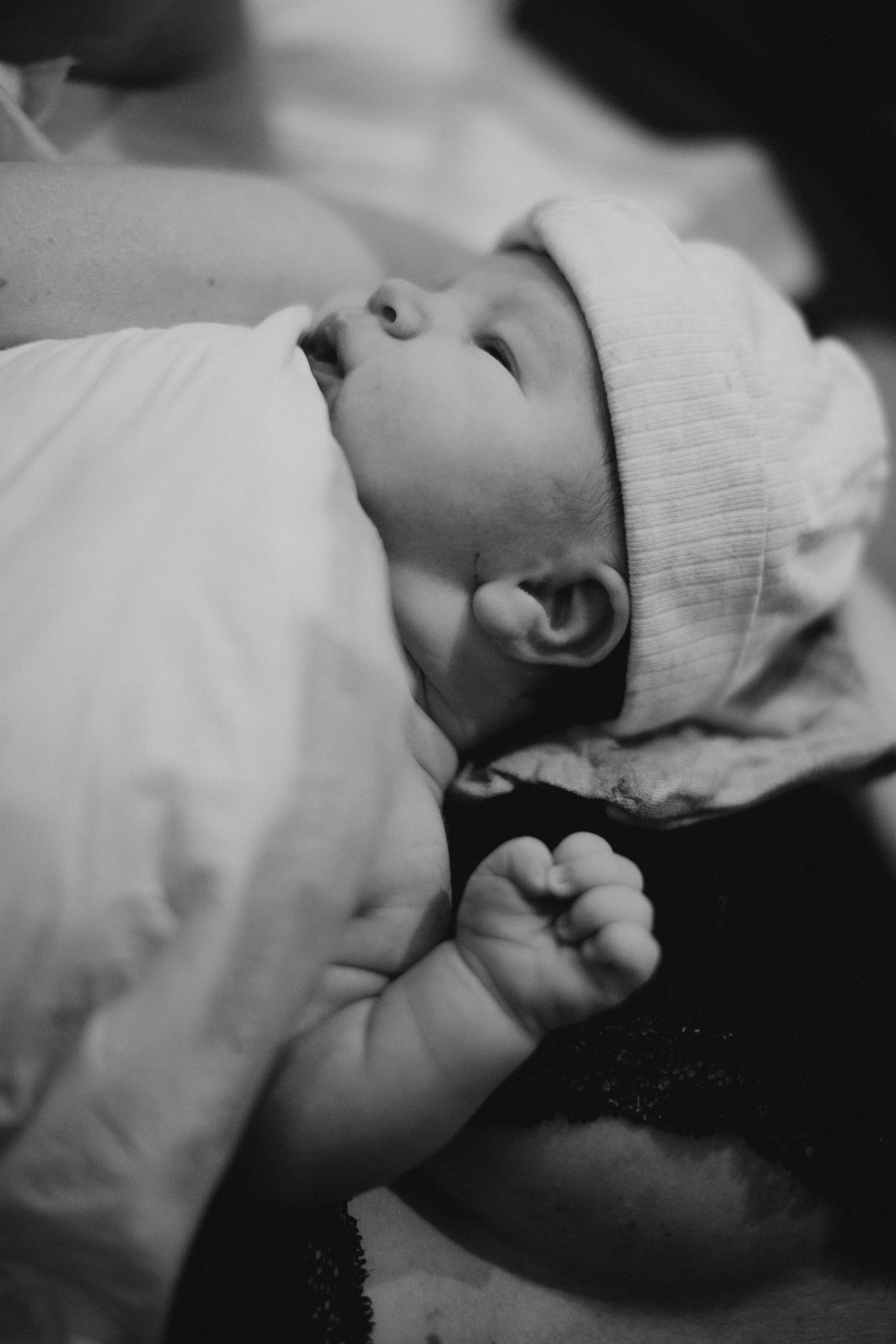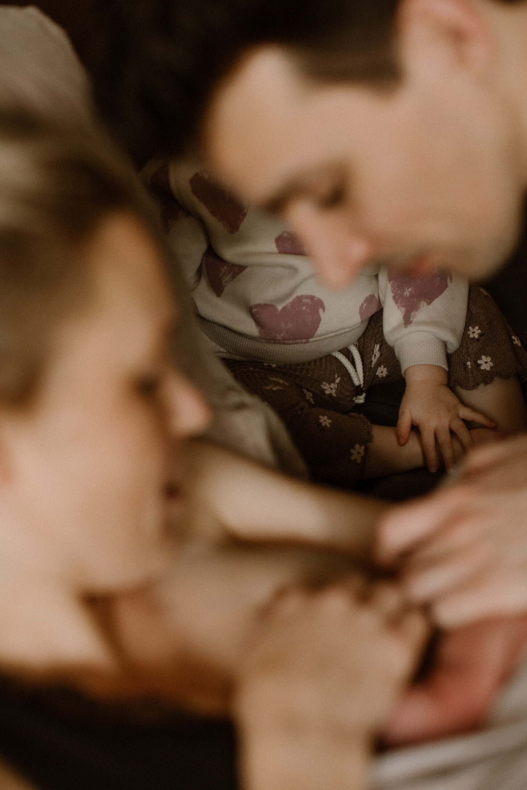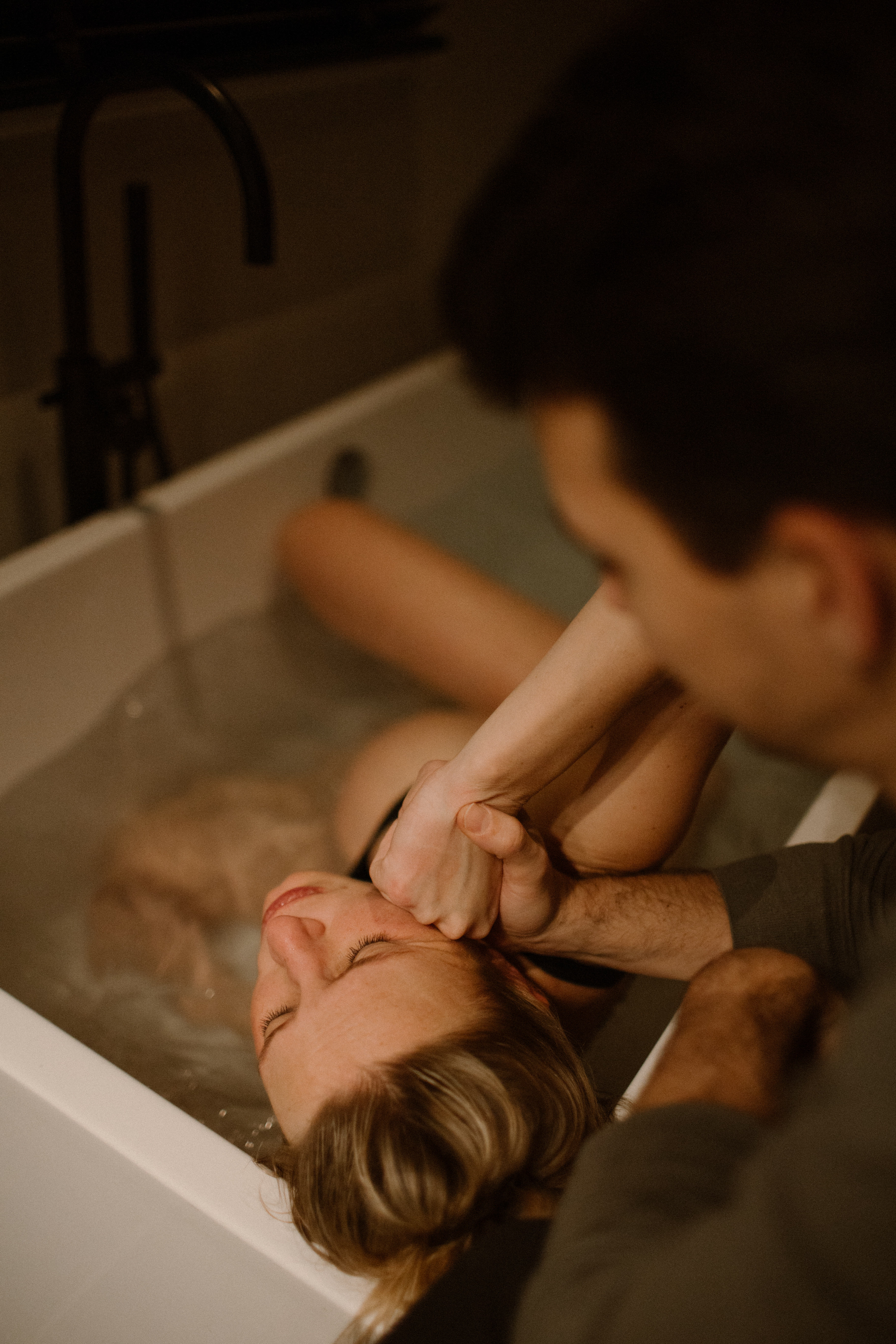 Maar lieve mensen, waar het ook bij deze bijzondere gebeurtenis om gaat, zijn de kleine momentjes tussendoor. Want als we bij bruiloften weleens zeggen, je leeft in een roes, je wordt geleefd, dan kan ik je één ding met zekerheid zeggen. Dat is bij een bevalling nog 10 keer meer het geval. Die lieve aanraking en geruststellende woorden van je partner glijden langs je heen, je bent zo gefocust op je lijf en je kindje dat de rest een grote waas is. En als partner zie je een kant van je vrouw die je nog nooit eerder hebt gezien, verbazing, zorgen, trots, hulpeloosheid, liefde, allemaal gevoelens die door je hoofd schieten en onbewust zichtbaar zijn op je gezicht. En als het dan eindelijk zover is, jullie je kleintje bijna gaan ontmoeten, dan stappen jullie in de grootste rollercoaster die er bestaat, en die komt pas tot stilstand als jullie kleintje op je buik ligt. De emoties die dan loskomen… zijn … on-be-schrijflijk, machtig en zo PUUR.