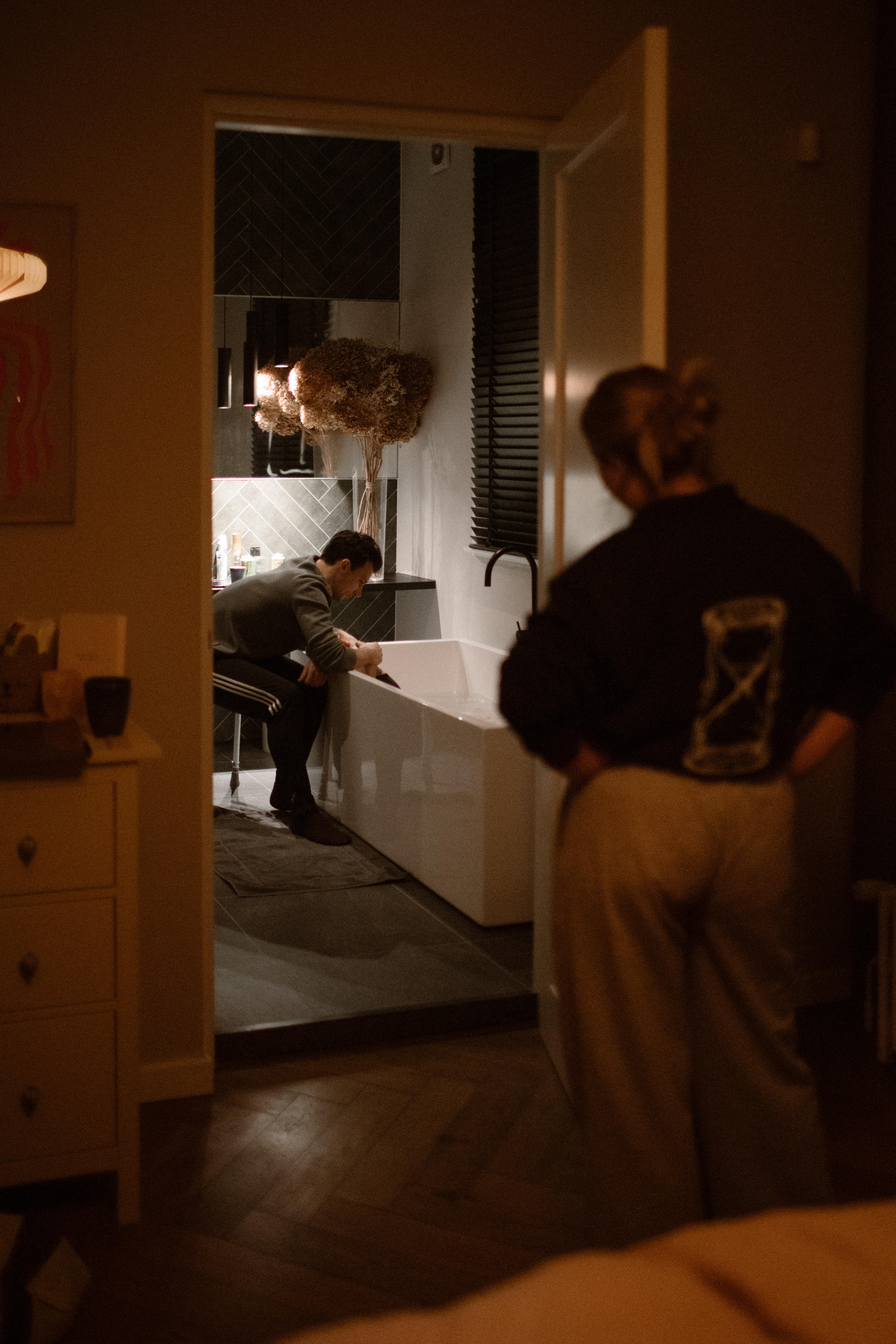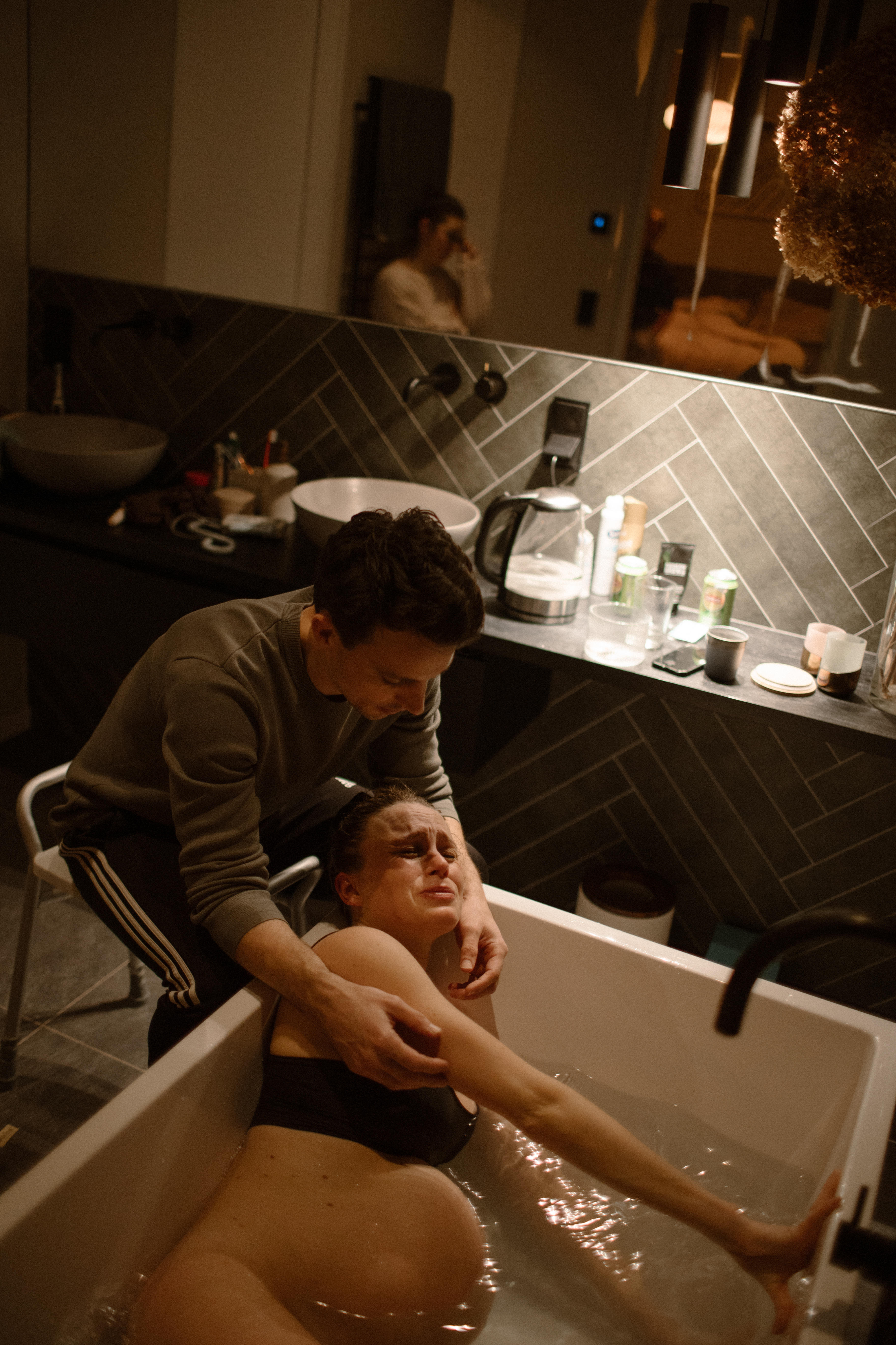 Als om 05:00 uur de voordeur opent word ik begroet door de verloskundige, ‘je bent op tijd, alles is nog ‘rustig’.’ De kerstboom straalt in het midden van de woonkamer, als enige lichtpunt verraadt het dat er iets gebeurt in het huis maar voor de rest is het huis gevuld met rust. Allesbehalve waar natuurlijk, want boven wordt er keihard gewerkt door Romy, bijgestaan door Tim die de spanning in het lijf van Romy verzacht met een lieve aanraking en geruststellende woorden. Tussen de weeën door begroet ze me met een lach en is ook bij haar opluchting te zien dat ik het heb gered.
